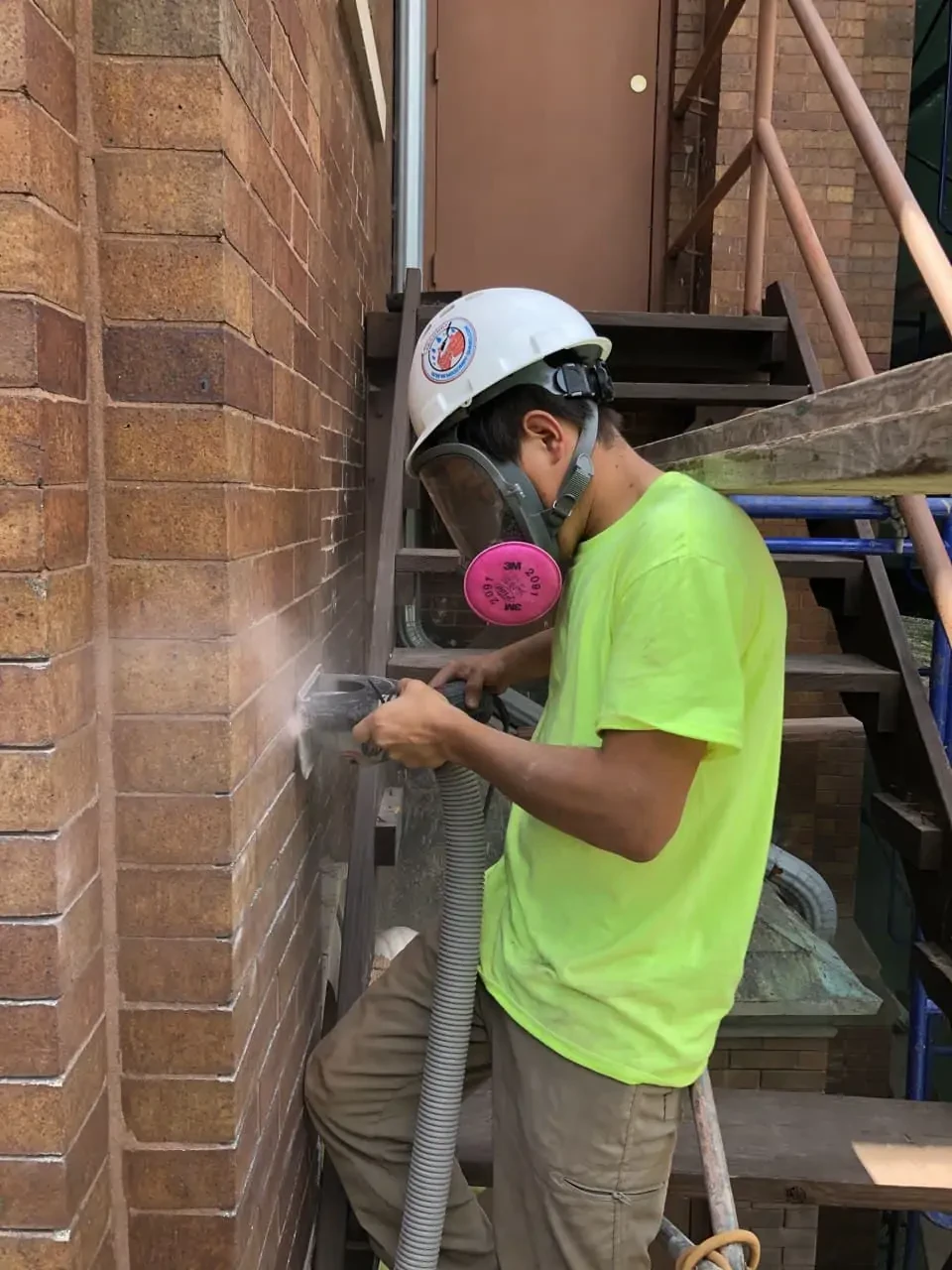 Special attention was given to maintaining the visual consistency of the masonry. Repair work was completed using materials and techniques that matched the existing brickwork so the restored sections blended naturally with the surrounding facade.