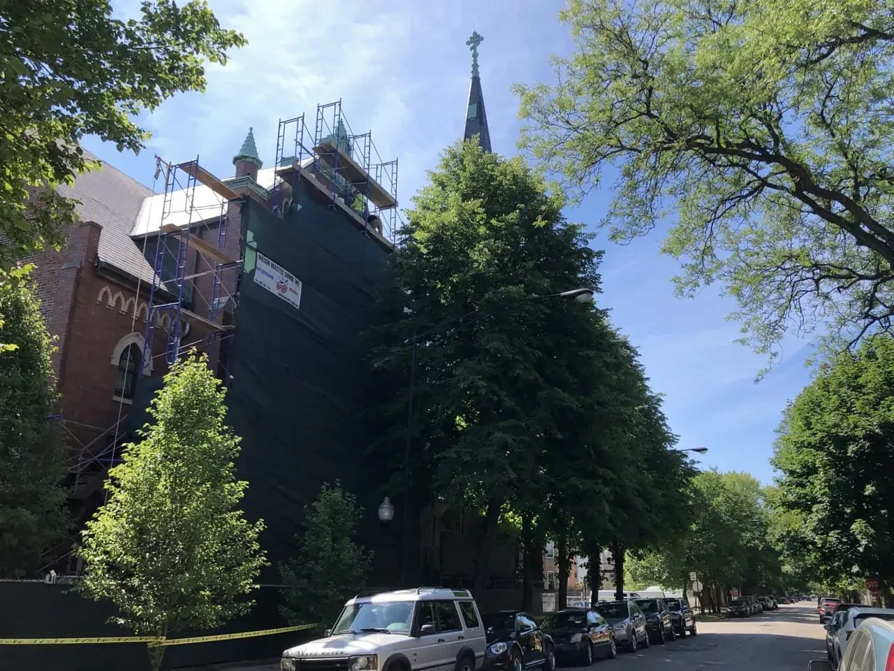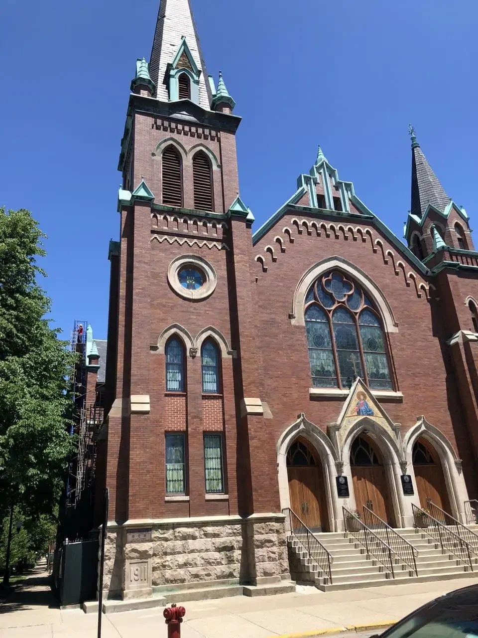 After the restoration was completed, the church exterior regained improved structural durability while preserving the historic character of the building’s masonry architecture.