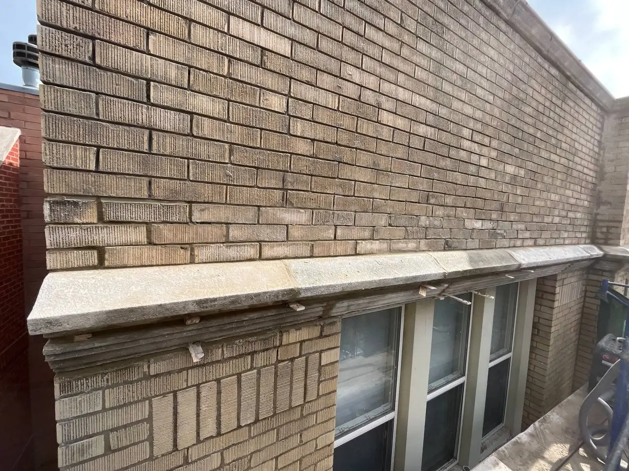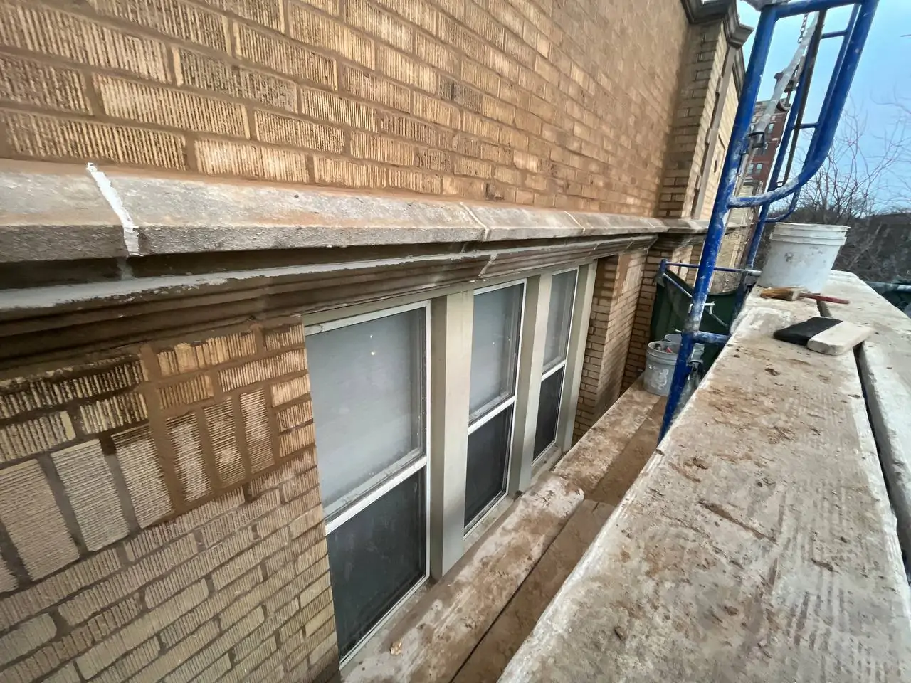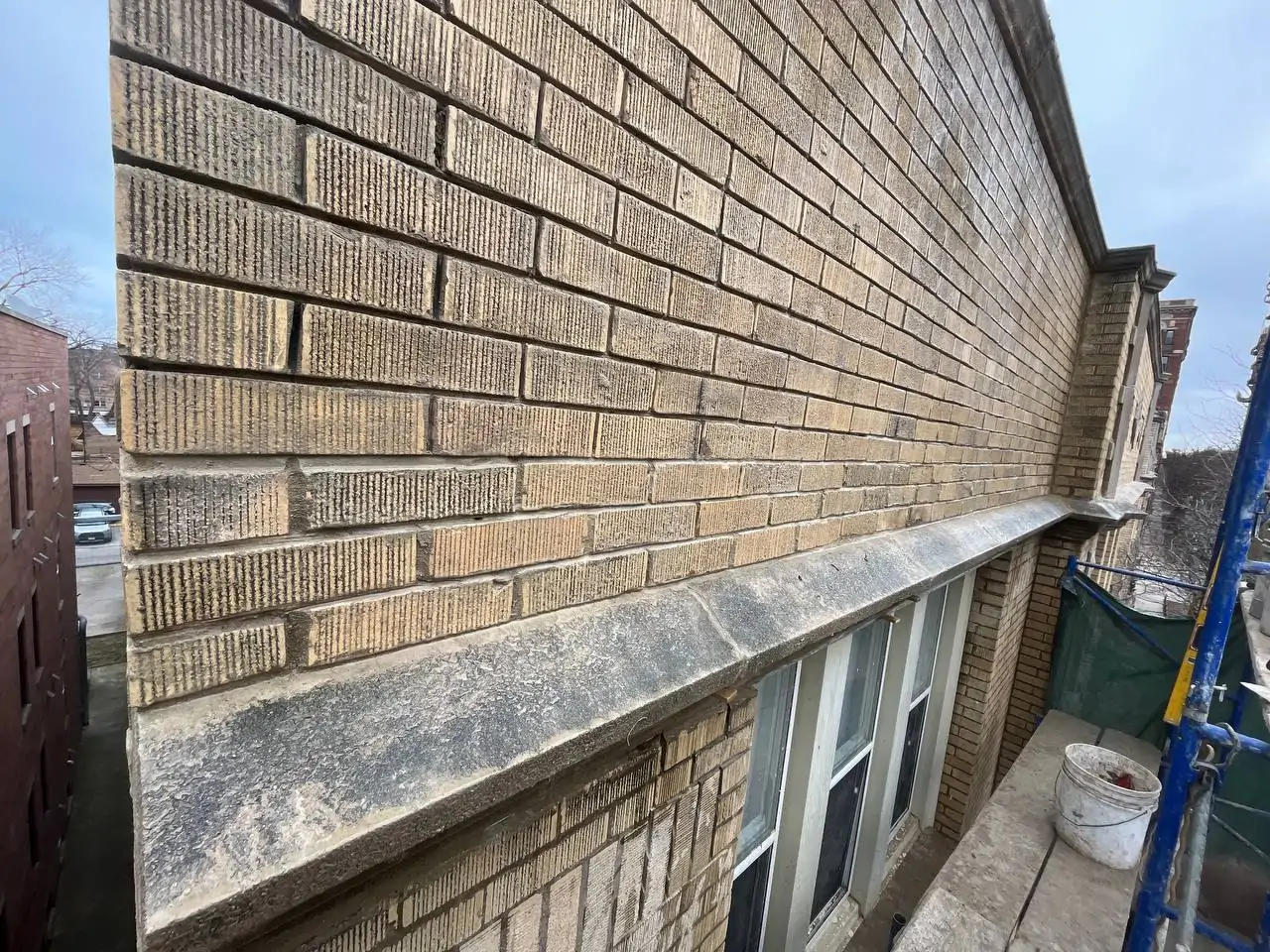 A masonry project in Chicago that involved decorative brickwork and the controlled lowering of limestone elements from a third-floor window to the public sidewalk. The work required careful planning, safe handling of materials, and precise installation to maintain both the building’s architectural style and structural integrity.