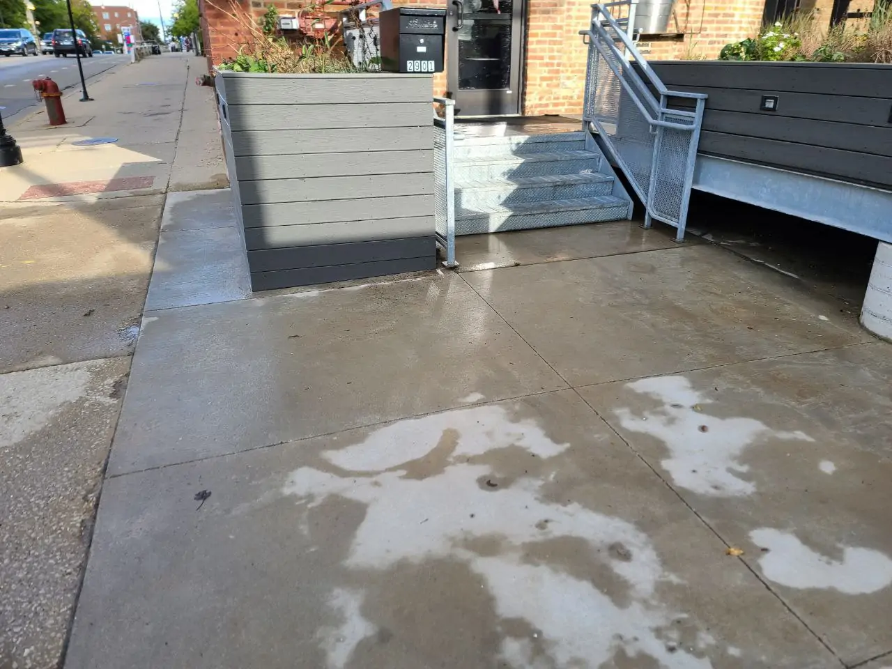 This project combined tuckpointing work with the installation of new front steps to restore both the structural condition and appearance of the building entrance. The improvements strengthened the masonry and provided a safer, more durable access area.