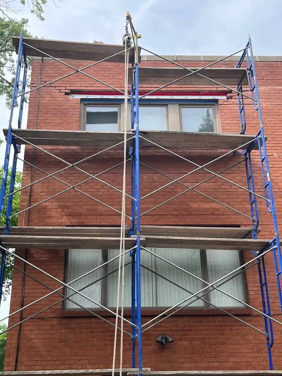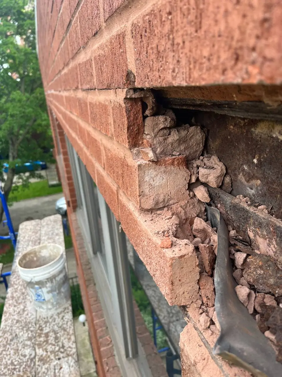 After completing the repair, the brick facade maintained its original red brick character while gaining improved structural reliability and resistance to future damage.