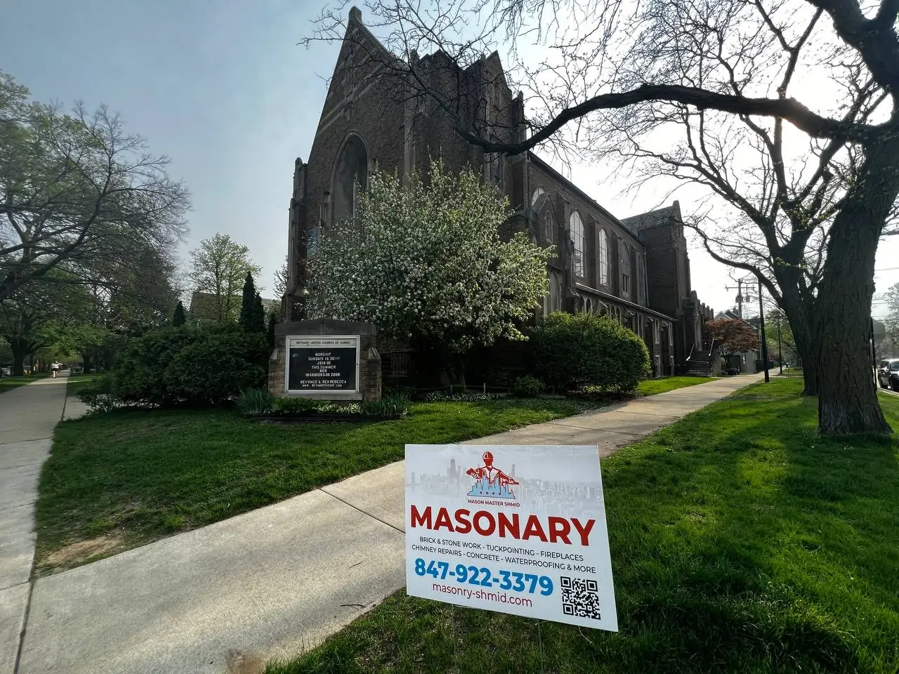 After completing the restoration work, the church exterior regained structural strength while preserving the traditional brick appearance that defines the character of the historic building.