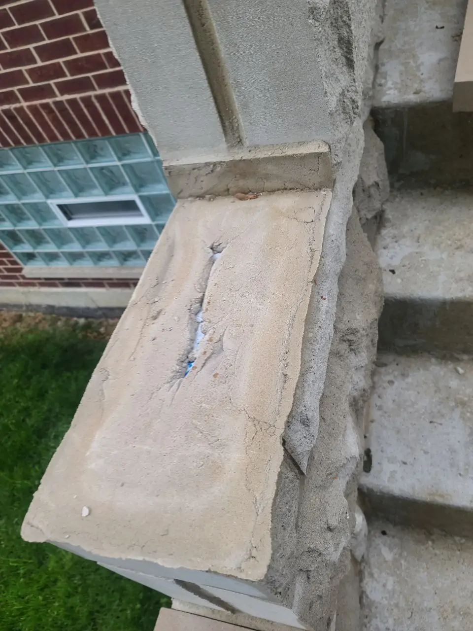 The front steps of a building often experience constant foot traffic and exposure to weather, which can gradually lead to cracks, erosion, and surface deterioration. In this project, restoration work was required to repair and stabilize aging stone steps at the main entrance of the property.