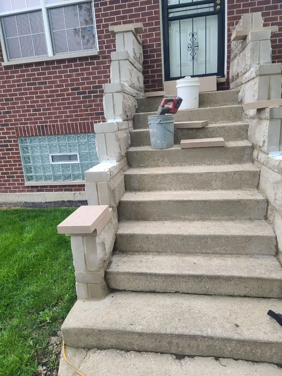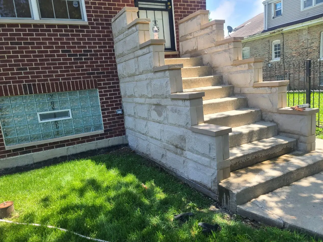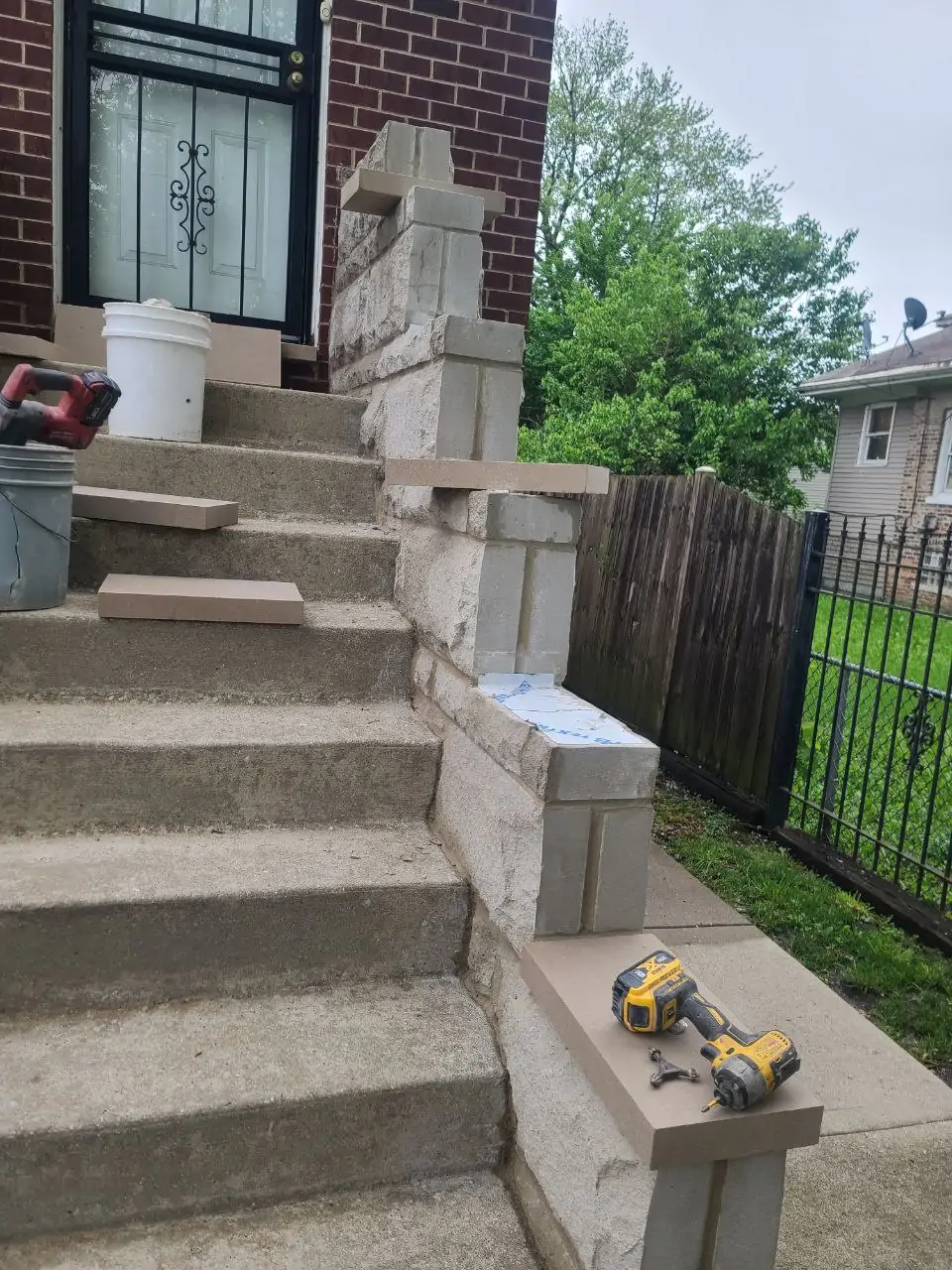 This project combined tuckpointing work with the installation of new front steps to restore both the structural condition and appearance of the building entrance. The improvements strengthened the masonry and provided a safer, more durable access area.