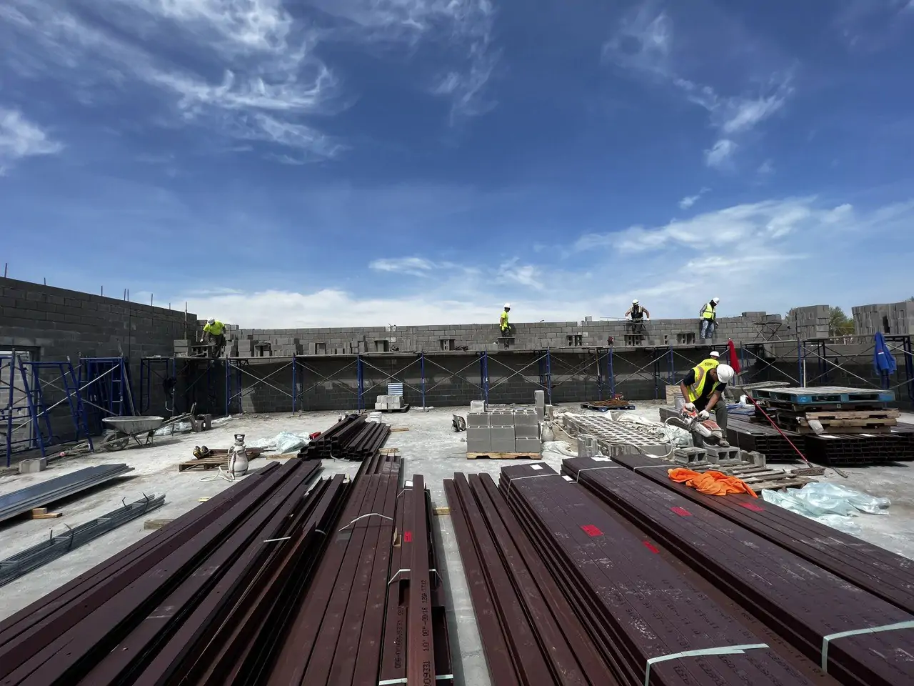 The masonry team worked on building the structural walls using high-quality brick and professional bricklaying techniques. Special attention was given to the alignment of the masonry courses, the strength of mortar joints, and the stability of the entire structure to meet commercial building requirements.